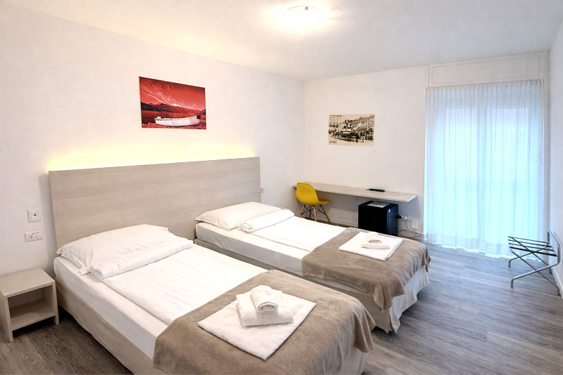 Le camere di HI Luino offrono un equilibrio ideale tra comfort e praticità: spazi ordinati, atmosfera rilassante e dotazioni progettate per chi viaggia per piacere o per lavoro. Tutte dotate di aria condizionata e TV.